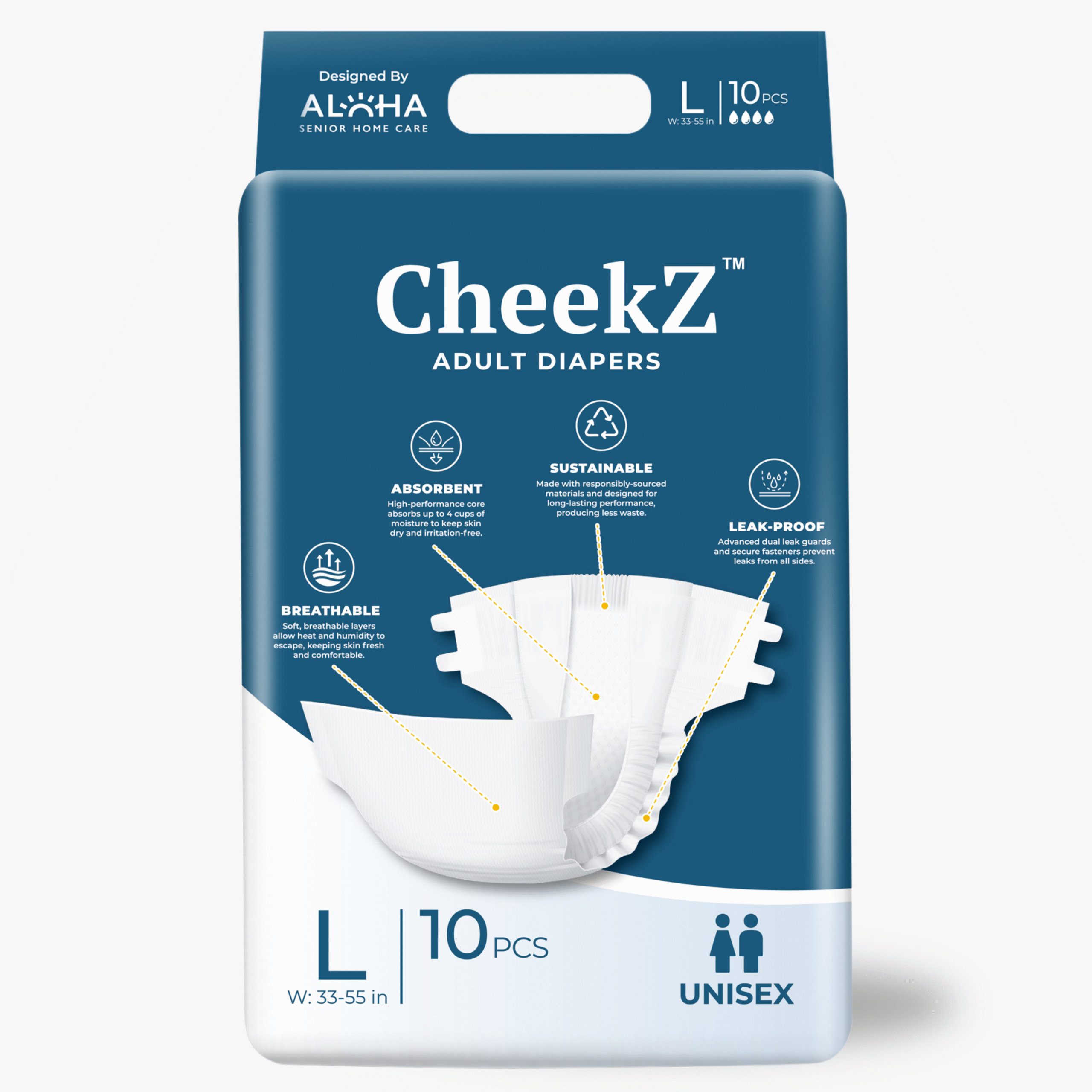 CheekZ Adult Diapers – Large (L), 10 Pack